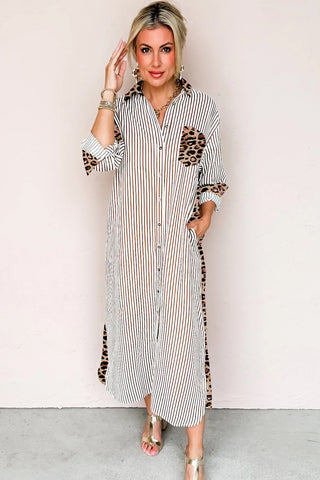 Blue Floral Striped Patchwork Flutter Sleeve Blouse