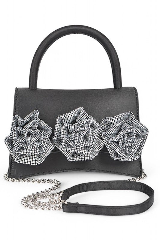 Sparkle Flower Top Handle Clutch Bag