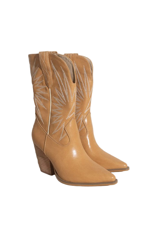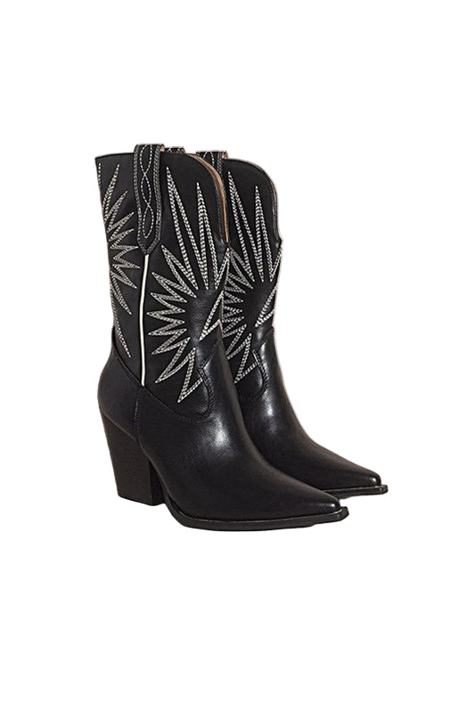Step into understated elegance with the Emersyn Western Boots—where supernova stitching meets modern attitude. These slip-on stunners feature a man-made upper with a padded insole for all-day comfort, paired with a leather-wrap heel that means business. Standing 9 inches tall with a 3.5-inch heel and subtle front platform, they're the perfect blend of cowboy cool and refined style. Available in almond, black, and white, the Emersyn proves you don't need the attitude to rock the boots.