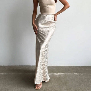 Sheer Trend - Solid Color High Waist Drawstring Belted Satin Maxi Skirt