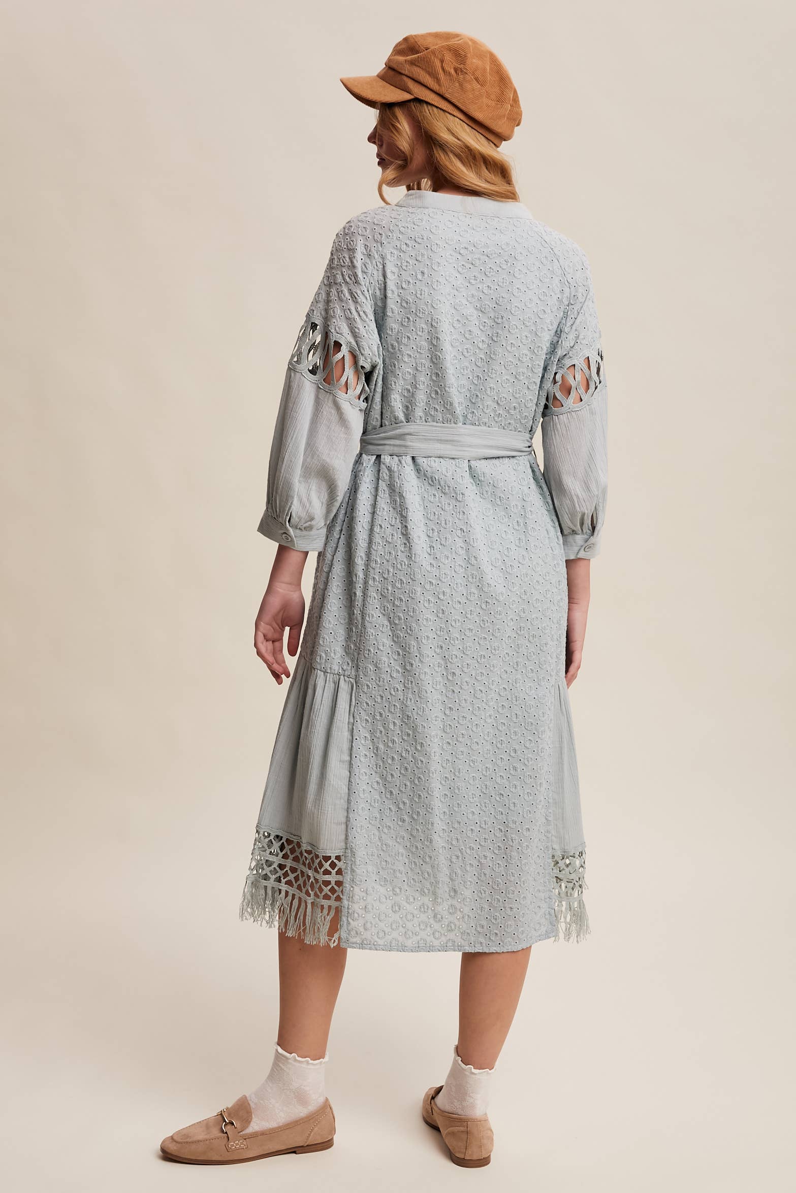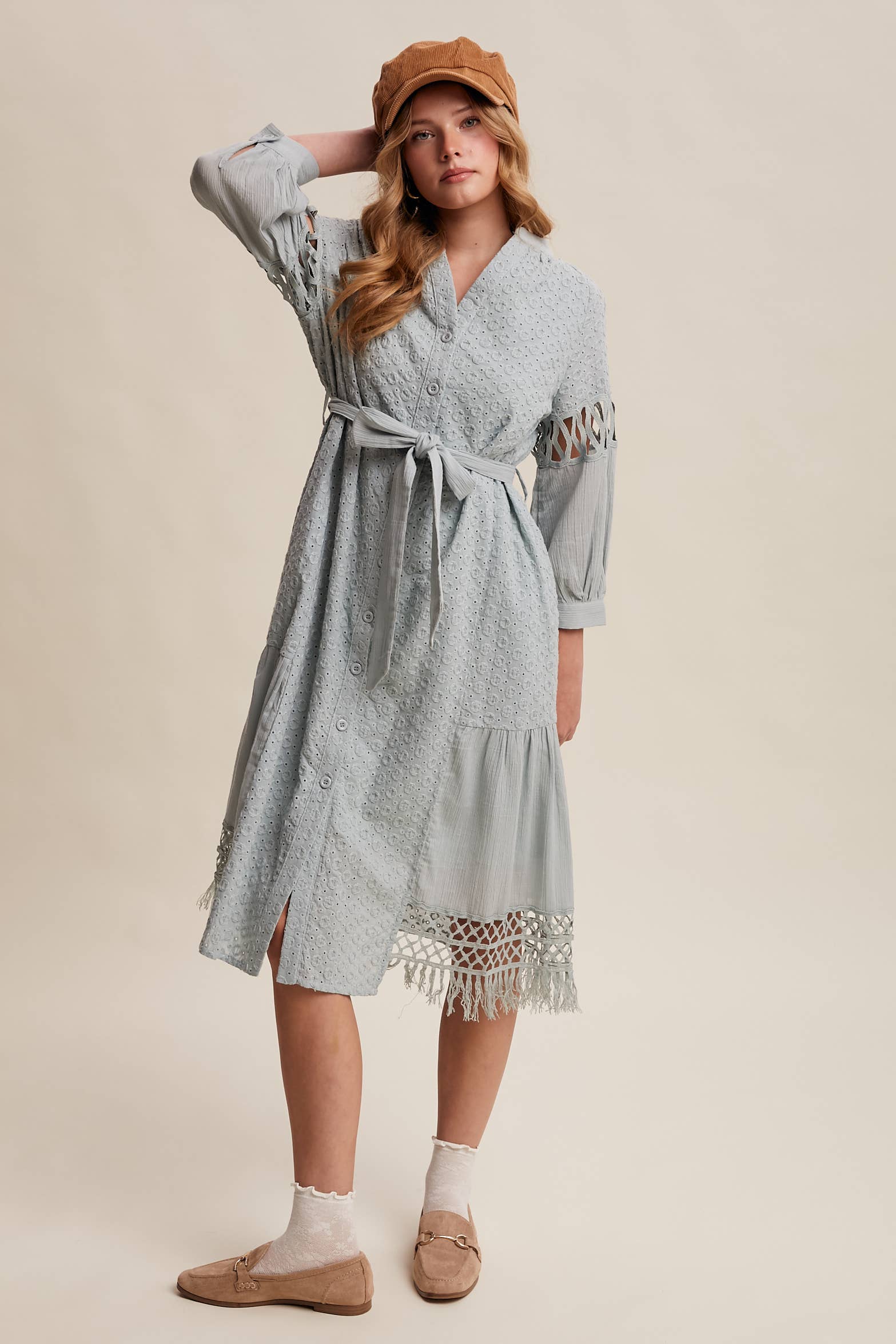 Listicle - Lace Cutout Sleeve Eyelet Midi Dress LD0730
