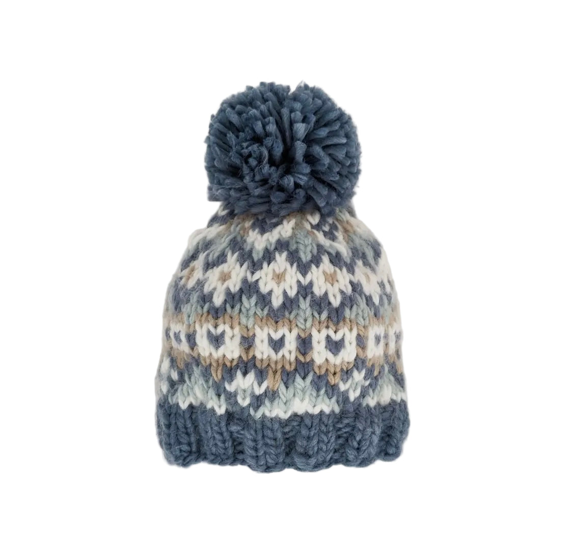 Fairisle Slate Pom Pom Beanie Hat Baby & Kids~(pre- order Ships Sept. 2nd) FREE SHIPPING!!