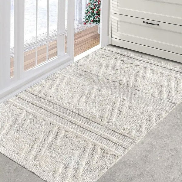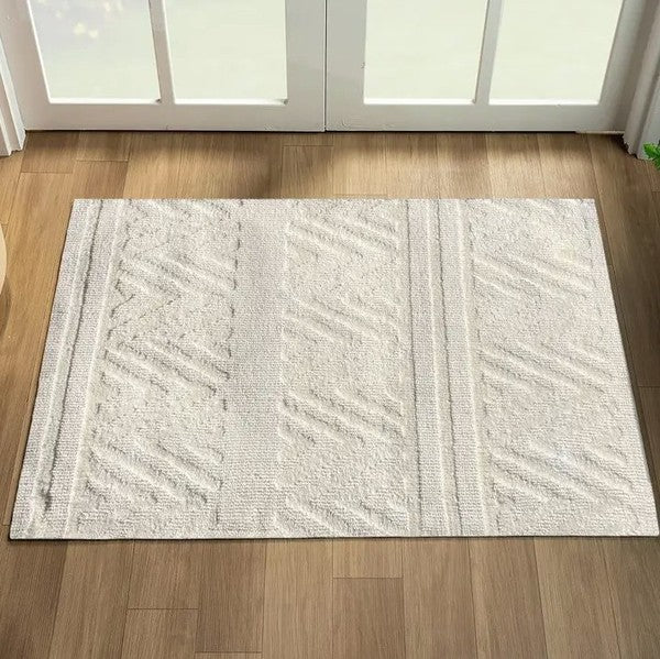 2x3 Ivory Light Cream Geometric Abstract Soft Pile Boho Minimal Area Rug