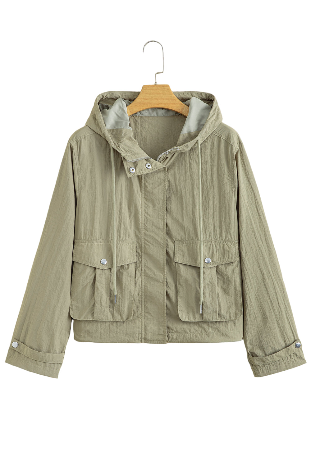 Laurel Green Zipped Pocket Cropped Hooded Utility Jacket