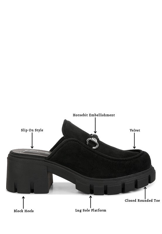 Step into effortless style with the Prosper Platform Mule—where velvet-soft microfiber meets a bold horsebit accent that steals the show. These slip-on beauties feature chunky lug soles that ground your look with modern edge, while the cushioned insole keeps your feet happy all day long. The rounded toe and platform block heel deliver that perfect casual-chic vibe that works from brunch to errands. A wardrobe essential that's as comfy as it is cool.