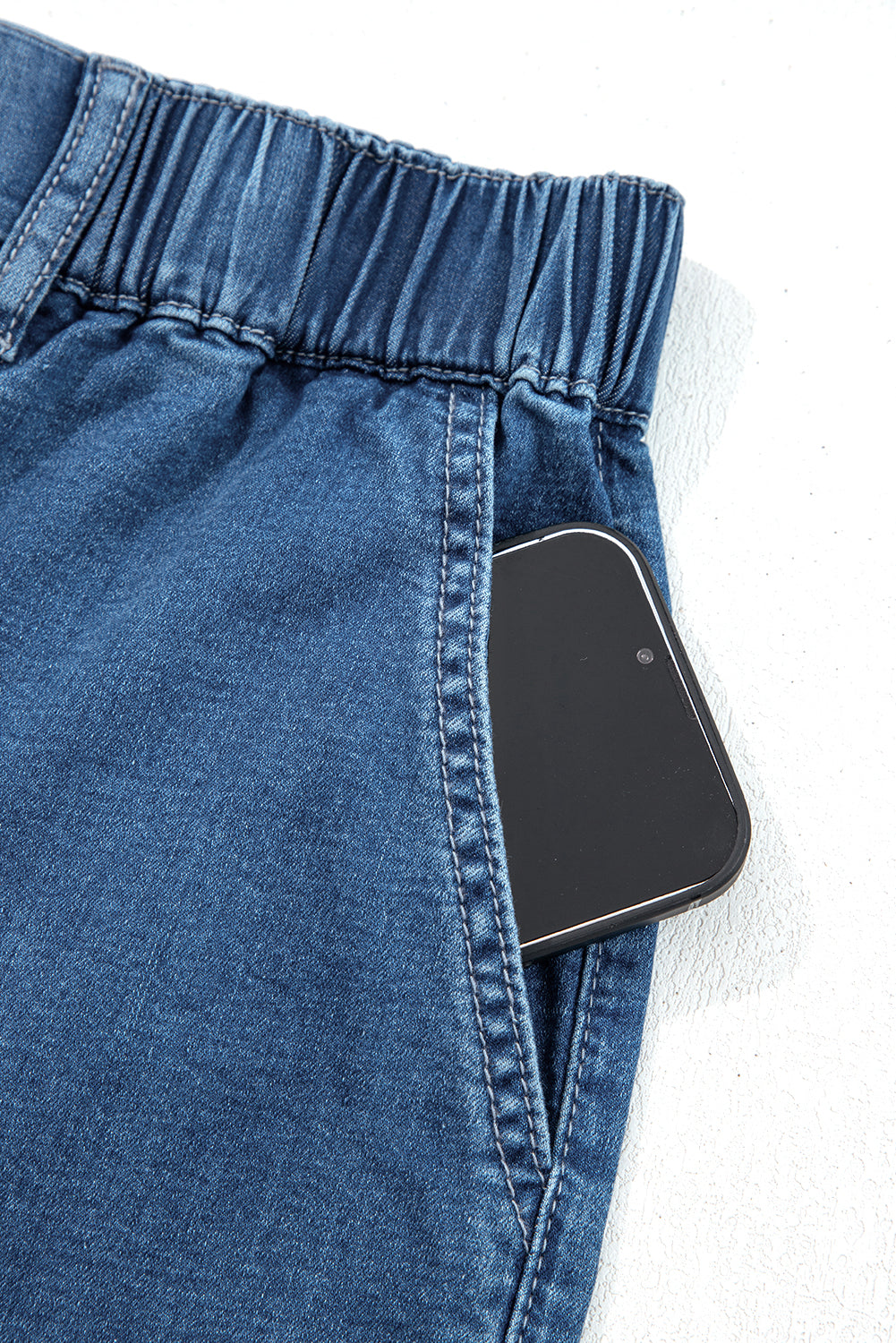 Sail Blue Plus Size Elastic Waist Ruffled Wide Leg Denim Pants