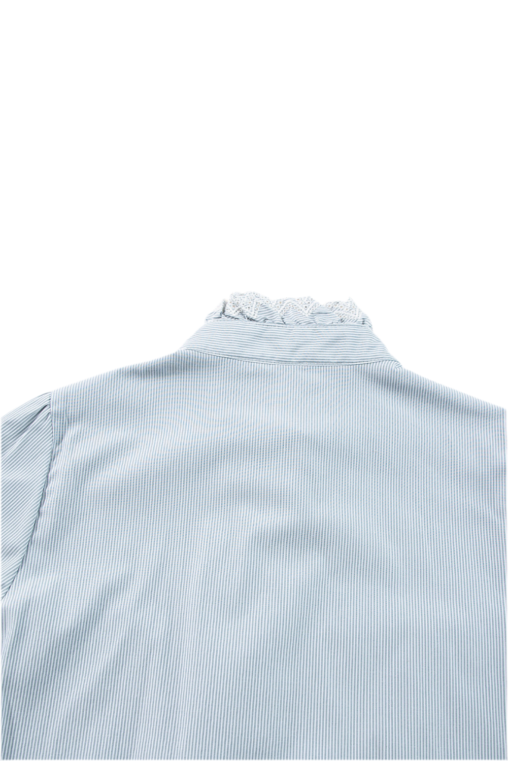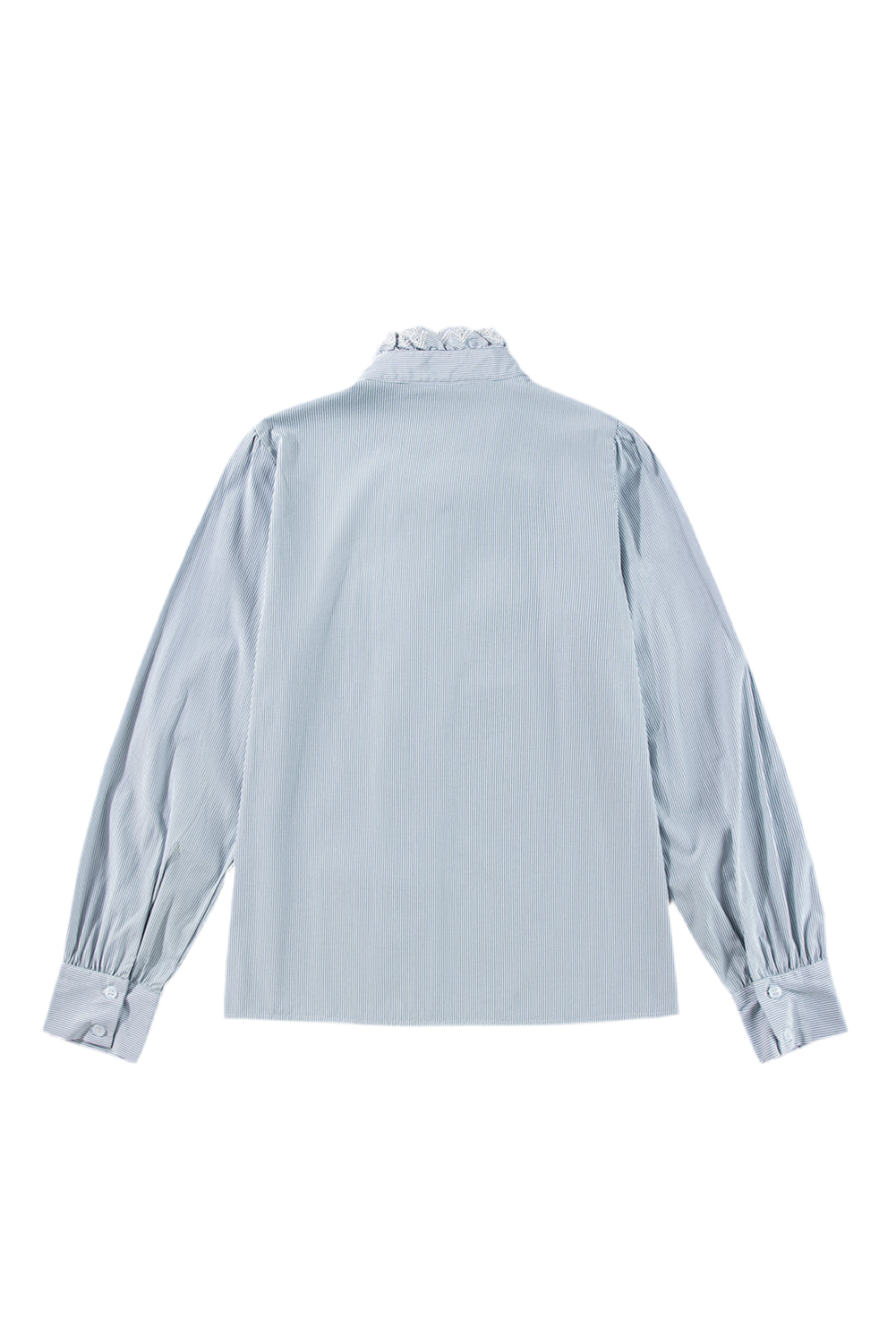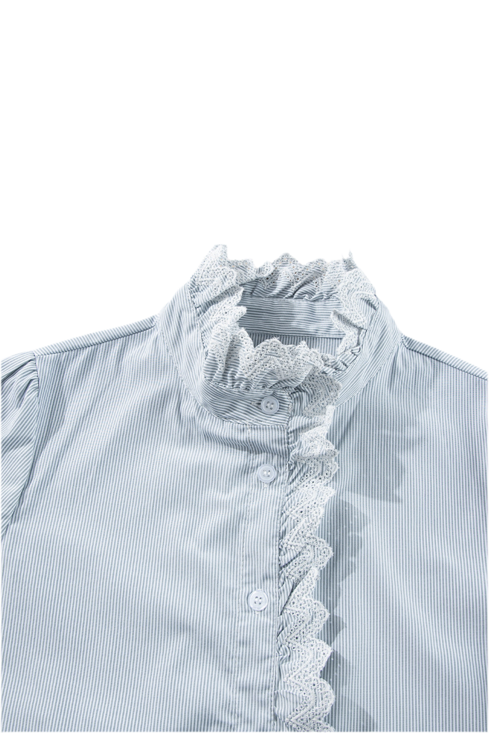 Sky Blue Stripe Frilled Trim Button Up Long Sleeve Shirt