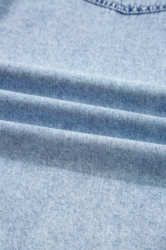 Rock a laid-back look with this denim shirt dress that's equal parts comfort and cool. The faded wash gives it that perfectly broken-in feel, while functional snap closures and chest pockets bring practical flair to your everyday rotation. Finished with an unfinished raw hem for that effortlessly undone edge, it's the ultimate piece for mixing casual vibes with personality. Crafted from 100% cotton. Available in sizes for spring, summer, fall, and autumn wear. Check the size chart for your perfect fit.